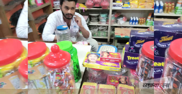 দোকানের ভেতরে নির্বিঘ্নে পটকা-বাজি বিক্রি হচ্ছে। আর শিশুদের ভিড়তো লেগেই আছে। অবৈধ হওয়াতে এসব পটকা-বাজি রাখা হয়েছে দোকানের ওপরের সিলিংয়ে আবার অনেকে দাপট দেখিয়ে দোকানের সামনেই সাজিয়ে রেখেছেন।