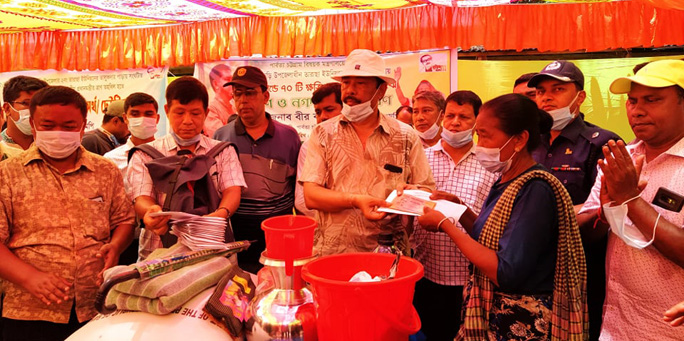 এসময় পার্বত্য চট্টগ্রাম বিষয়ক মন্ত্রণালয়ের পক্ষ থেকে অগ্নিকান্ডে ক্ষতিগ্রস্থ ৭০টি পরিবারকে পরিবার প্রতি নগদ ২৫ হাজার টাকা ও ৫০ কেজি করে চাল দেওয়া হয়। জেলা দুর্যোগ ও ত্রাণ শাখার পক্ষ থেকে প্রতিটি পরিবারকে ২ বান্ডেল টিন, পার্বত্য জেলা পরিষদের সদস্যদের পক্ষ থেকে একটি করে বালতি, পানির জগসহ বিভিন্ন সমাজসেবার পক্ষ থেকে গৃহস্থালিসামগ্রী প্রদান করা হয়।