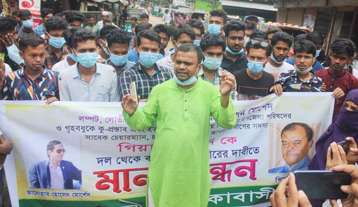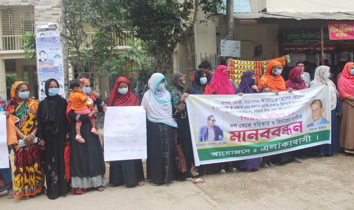 মিরসরাই সাবেক উপজেলা চেয়ারম্যানের বিরুদ্ধে মানববন্ধন ও মিছিল
