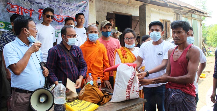এসময় ত্রাণ বিতরণ কার্যক্রমে এম শ্রী ইন্দ্র বংশ ভিক্ষু,চট্টগ্রাম মহানগর মার্মা যুব সংঘের প্রতিষ্ঠাতা সুধা অং মার্মা, উপদেষ্টা মংপ্রু মার্মা, সভাপতি রাজু মার্মা,সাংগঠনিক সম্পাদক অহ্লা অং মার্মা, তালুকদার পাড়ার কারবারী মংপ্রু মার্মাসহ চট্টগ্রাম মার্মা যুব সংঘের বিভিন্ন সদস্য ও পাড়াবাসী উপস্থিত ছিলেন।