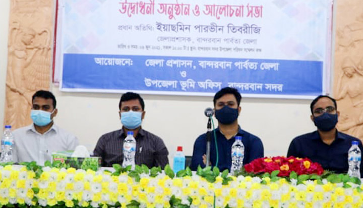 বান্দরবান : ভূমি উন্নয়ন কর দিব দেশের উন্নয়নে অংশ নিব, প্রধানমন্ত্রীর অঙ্গীকার ভূমিহীন থাকবে না কেউ_এই প্রতিপাদ্যকে সামনে রেখে বান্দরবানে শুরু হয়েছে ভূমি সেবা সপ্তাহ ২০২১। এ ভূমি সেবা সপ্তাহের মাধ্যমে পার্বত্য অঞ্চলের মানুষের ভূমি নিয়ে বিভিন্ন সমস্যা সমাধানের জন্য বিভিন্ন পদক্ষেপ গ্রহণ করা হবে। ভূমি সেবা সপ্তাহ চলবে আগামী ১০ জুন পর্যন্ত।