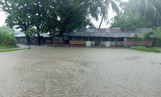 সরেজমিনে গিয়ে দেখা যায়, প্লাবিত হয়ে গেছে উপজেলার ভাটিয়ারী ইউনিয়ন পরিষদের ৪ নং ওয়ার্ড ভাটিয়ারী পূর্ব হাসনাবাদে অবস্থিত ভিকেএস প্রাথমিক বিদ্যালয়টি।