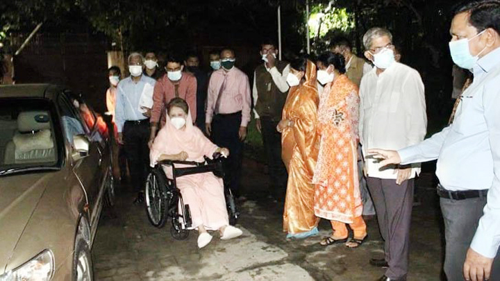 এর আগে ৫৩ দিন পর রাজধানীর এভারকেয়ার হাসপাতাল থেকে শনিবার গুলশানের ভাড়া বাসা ‘ফিরোজায়’ ফিরেছেন বিএনপি চেয়ারপারসন। ছাড়পত্র পাওয়ার পর রাত ৮টা ১০ মিনিটের দিকে হাসপাতাল থেকে বাসার উদ্দেশে রওনা হন। ‘ফিরোজায়’ পৌঁছান রাত সাড়ে ৮টার দিকে।