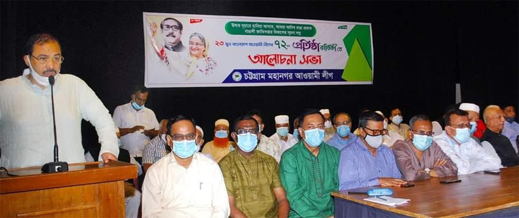 চট্টগ্রাম : মহানগর আওয়ামী লীগের উদ্যোগে বাংলাদেশ আওয়ামী লীগের ৭২ তম প্রতিষ্ঠাবাষির্কী উপলক্ষে স্বাস্থ্যবিধি মেনে ও সামাজিক দূরত্ব বজায় রেখে আলোচনা সভা অনুষ্ঠিত হয়েছে।