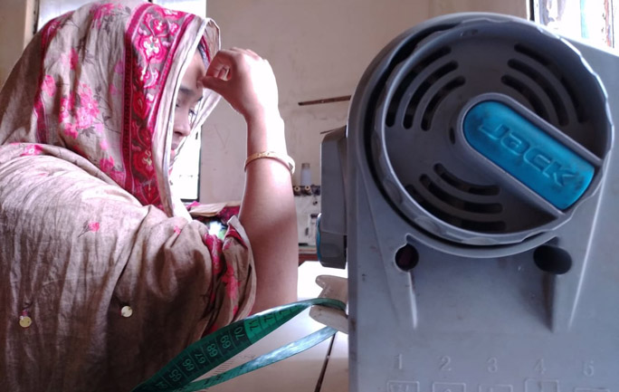 স্বামীর স্বল্প আয়ে সেলাইয়ের কাজ করে সংসারে খরচের যোগান দেন বিউটি। সমিতি থেকে কিস্তিতে টাকা নিয়ে কিনেছেন সেলাই (ডিজিট্যাল) মেশিন। সুখ নাগালের আশায় চলছিল বেশ। কাপড় সেলাই করানোর জন্য ধরনা দিত বিভিন্ন মার্কেট-শপিংমলের দোকানিরা। কিন্তু সেই আশা এখন প্রতিনিয়ত হতাশা। চলমান কঠোর লকডাউনে মার্কেট শপিংমল বন্ধে সুঁইয়ে গাঁথা সুতা রয়েই গেছে। থেমে গেছে কাজ। সেলাইয়ের জন্য আসে না কাপড়। রোজগারের একমাত্র কর্তা বাসায় দিন পার করছে। ঘড়ির কাটার মত মাস ফুরালেই ঘর ভাড়ার জন্য কলিং বেল বাজাবে বাড়িওয়ালা। কিস্তির টাকাতো দাঁড়িয়ে আছে, ভাবিনি এমন দূর্দিন আসবে; বলছিলেন বিউটি আক্তার।