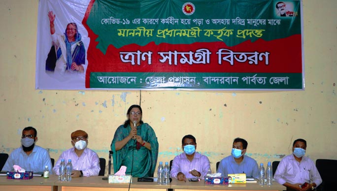 রবিবার (১২ জুলাই) বান্দরবান জেলা প্রশাসনের আয়োজনে জিমনেসিয়াম হলে এই ত্রাণ সামগ্রী বিতরন করেন জেলা প্রশাসক ইয়াছমিন পারভীন তিবরীজি।