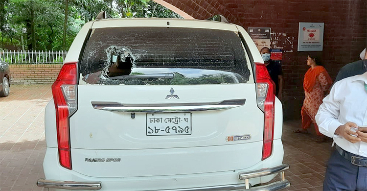 চন্দ্রিমা উদ্যান মোড়ে পরিকল্পনা সচিবের গাড়ি ভাংচুর।[/caption]