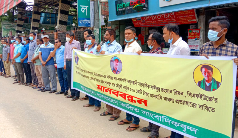 মানববন্ধনে বক্তারা বলেন- মিথ্যা সংবাদ প্রচারের অভিযোগে ৯ জন সাংবাদিকসহ ১১ জনের বিরুদ্ধে চট্টগ্রামের সাংসদ হুইপ শামসুল হক চৌধুরী ৫শ’ কোটি টাকার মিথ্যা মামলা দায়ের করেন। এ ধরনের মামলা স্বাধীন সাংবাদিকতা, মুক্ত গণমাধ্যম ও সাংবাদিকদের নিরাপত্তার জন্য হুমকি স্বরূপ। তাই অবিলম্বে এই মিথ্যা মামলা প্রত্যাহার করে নেয়ার জোর দাবি জানান উপস্থিত বক্তরা।