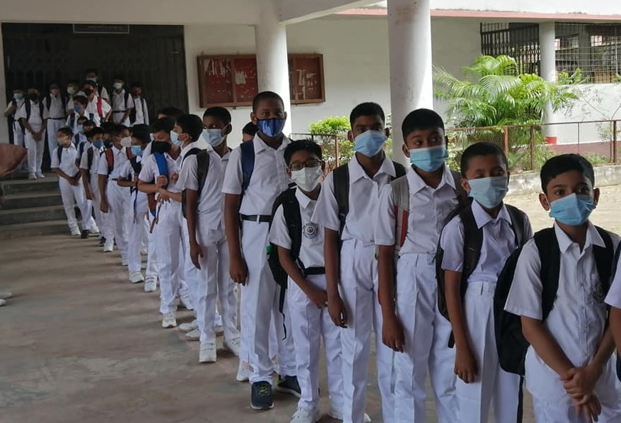 রোববার (১২ সেপ্টেম্বর) সকাল থেকে স্কুল পোশাকে শিক্ষার্থীদের পদচারণায় প্রাণ সঞ্চালিত হতে থাকে। মুখে মাস্ক পরিহিত একজন আরেকজনকে চিনতে কষ্ট হলেও চোখে চোখ পড়তে না পড়তেই জানতে চাচ্ছিল ' কেমন আছিস রে, সহসা দেখা হবে ভাবতে পারিনি।'