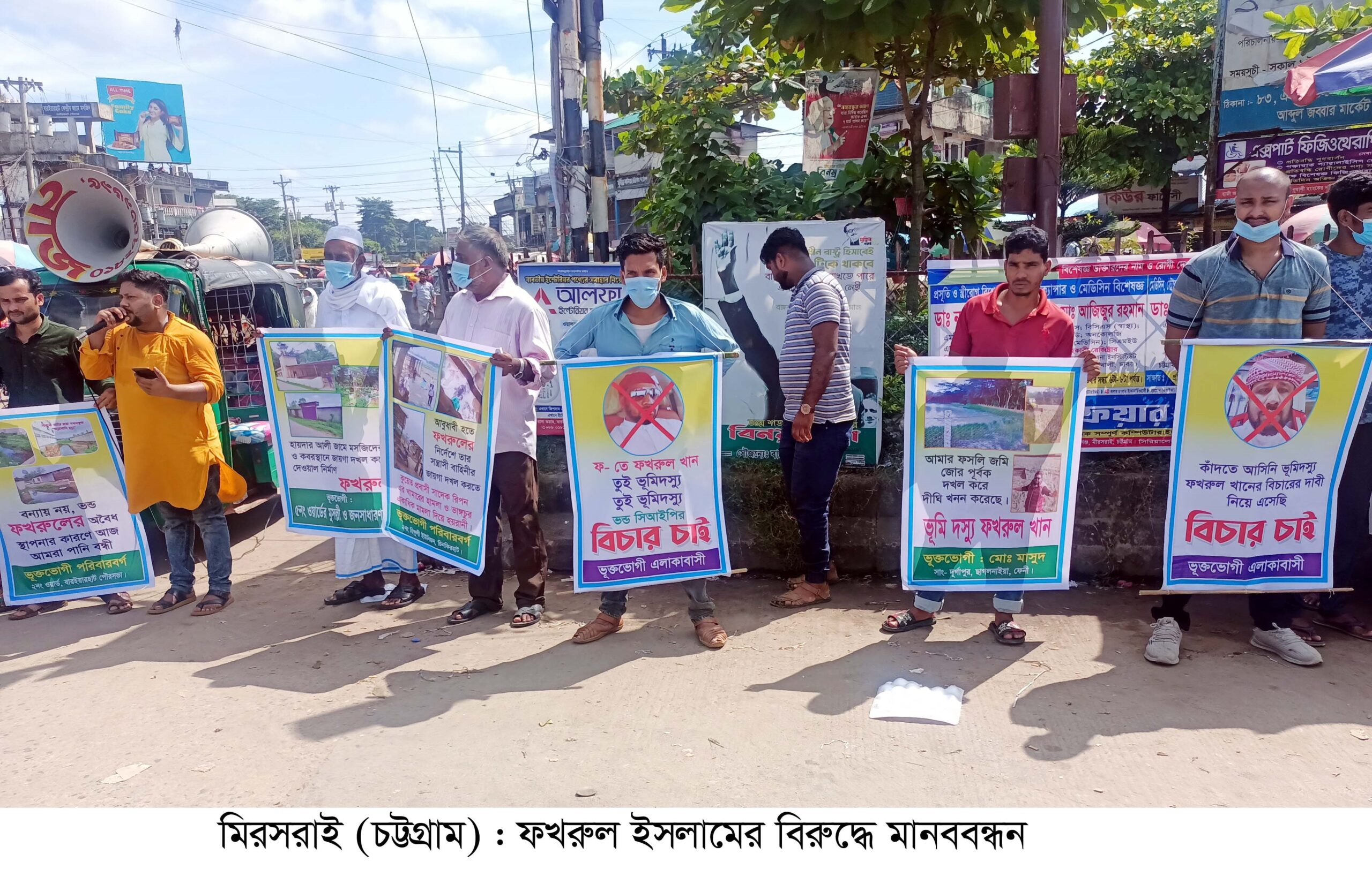 মিরসরাই : মিরসরাই উপজেলায় বারইয়ারহাট পৌরসভা এলাকার আবুধাবি প্রবাসী ফখরুল ইসলাম খানকে দ্রুত দেশে এনে গ্রেপ্তার করে দৃষ্টান্তমূলক শাস্তির দাবিতে এলাকাবাসী ও ভুক্তভোগীদের ব্যানারে মানববন্ধন অনুষ্ঠিত হয়।
