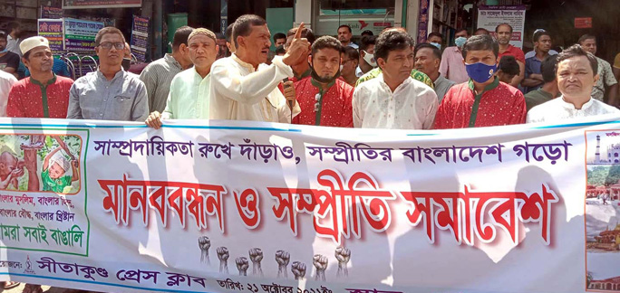 চট্টগ্রাম : সীতাকুণ্ড প্রেসক্লাব আয়োজিত সাম্প্রদায়িক বিরোধী মানববন্ধন ও সম্প্রীতি সমাবেশ অনুষ্ঠিত হয়েছে।