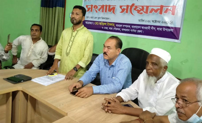সংবাদ সম্মেলনে উপজেলা আওয়ামী লীগের সাধারণ সম্পাদক মো. জহিরুল ইসলাম লিখিত বক্তব্যে বলেন, কুমিল্লায় কুরআন অবমাননার জেরে ১৪ অক্টোবর লামায় তৌহিদী জনতার ব্যানারে অনুষ্ঠিত প্রতিবাদ সমাবেশে মুনাজাতের মাধ্যমে সমাপ্ত করে সকলকে বাড়ি ফিরে যাওয়ার অনুরোধ জানায় আলেমগন। কিন্তু কিছু ব্যক্তি অতি উৎসাহী হয়ে মিছিল করে কেন্দ্রীয় হরি মন্দিরের দিকে যাওয়ার চেষ্টা করলে উপস্থিত পুলিশ তাদেরকে গতিরোধ করে মোড় ঘুরিয়ে দেয়। মিছিলটি চলে না গিয়ে আলী মিয়া শপিং কমপ্লেক্স সড়ক দিযে মাছ বাজার কর্ণারে আসলে তার পরবর্তী ঘটনা লামার সকলে প্রত্যক্ষ করেছেন। খবর পেয়ে তাৎক্ষনিক ঘটনাস্থলে উপস্থিত হয়ে অতি উৎসাহী লোকজনকে শান্ত করার চেষ্টা করি। তথাপি অতি উৎসাহী কিছু লোকজন পূজা মন্ডপের প্যান্ডেল ও বাজারের কিছু হিন্দু সম্প্রদায়ের দোকান পাট ভাংচুর করে। এক পর্যায়ে তারা মন্দিরের গেইট ভেঙ্গে ভিতরে প্রবেশের চেষ্টা করলে আওয়ামীলীগ ও ছাত্রলীগের লোকজন তাদেরকে শান্ত করার চেষ্টা করেন।