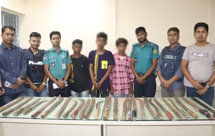 ধারালো অস্ত্রসহ ৩ কিশোর গ্যাং সদস্য গ্রেফতার বায়েজিদে[/caption]