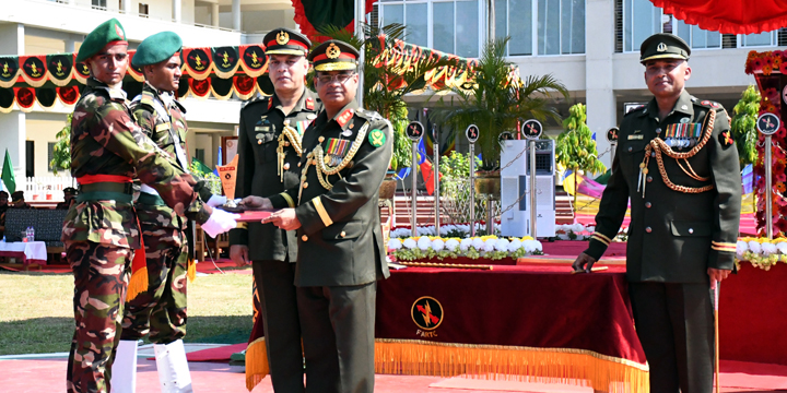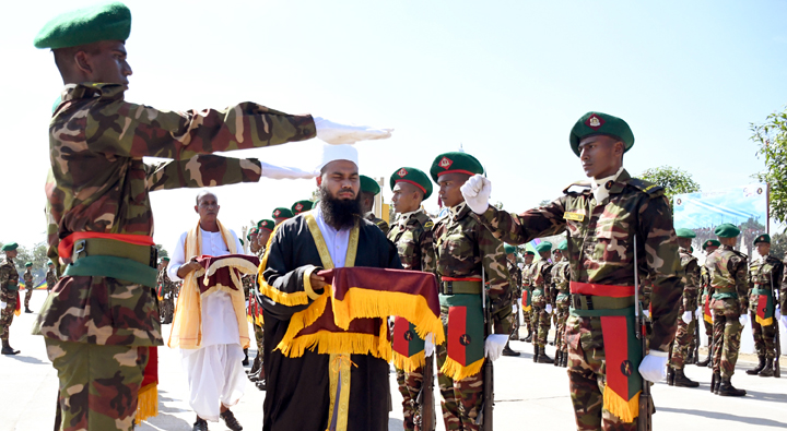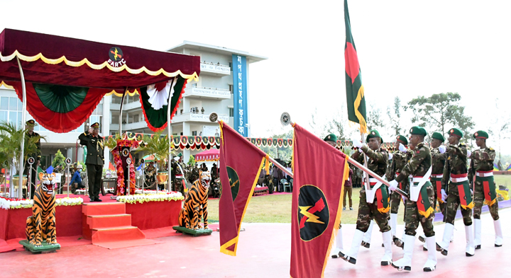 এর আগে প্যারেড পরিদর্শন ও অভিবাদন গ্রহণ করেন বাংলাদেশ সেনাবাহিনীর এ্যাডজুটেন্ট জেনারেল মেজর জেনারেল সাকিল আহমেদ।