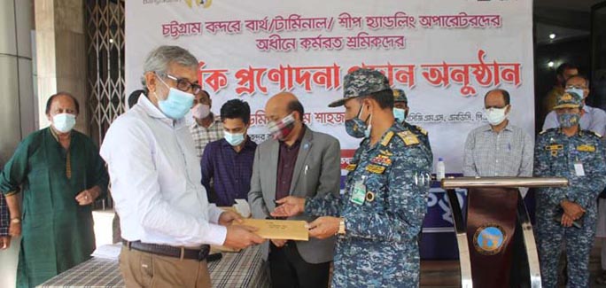 চট্টগ্রাম বন্দর কর্তৃপক্ষের চেয়ারম্যান রিয়ার অ্যাডমিরাল এম শাহজাহান প্রধান অতিথি হিসেবে শ্রমিক ও অপারেটরদের প্রতিনিধিদের হাতে প্রণোদনার এ অর্থ আনুষ্ঠানিকভাবে তুলে দেন।
