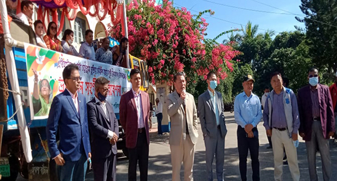 বুধবার (১ ডিসেম্বর) সকালে পার্বত্য জেলা পরিষদ প্রাঙ্গন থেকে ভ্রাম্যমাণ সংগীত অনুষ্ঠান শুভ উদ্বোধন করেন খাগড়াছড়ি পার্বত্য জেলা পরিষদ চেয়ারম্যান মংসুইপ্রু চৌধুরী অপু।