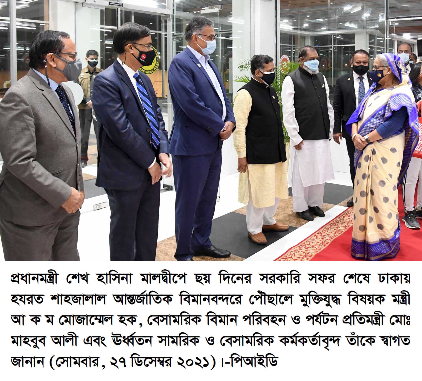 প্রধানমন্ত্রী শেখ হাসিনা মালদ্বীপে ছয় দিনের সরকারি সফর শেষে ঢাকায় পৌঁছেছেন