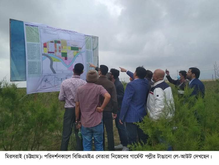মিরসরাই (চট্টগ্রাম) প্রতিনিধি:::দেশে প্রথম বারের মত নিজস্ব গার্মেন্ট পল্লী তৈরি করতে যাচ্ছে বাংলাদেশ পোশাক প্রস্তুতকারক ও রপ্তানীকারক সমিতি (বিজিএমইএ)। গার্মেন্ট ব্যবসায়ীদের শীর্ষস্থানীয় এ সংগঠন চট্টগ্রামের মিরসরাইয়ে বঙ্গবন্ধু শেখ মুজিব শিল্প নগরে ৫শ একর জমির ওপর তৈরি করতে যাচ্ছে গার্মেন্ট পল্লী। গতকাল শনিবার (৫ ফেব্রæয়ারি) বেলা ১২টার দিকে সংগঠনটির সভাপতি ফারুক হাসানসহ শীর্ষ নেতারা এটি পরিদর্শনে আসেন।