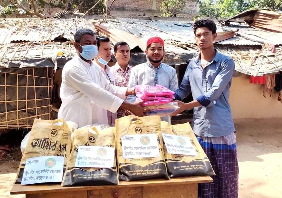 সাংবাদিক ফোরাম নেতৃবৃন্দ প্রতি পরিবারকে কোরআন শরীফ, জায়নামাজ, শাড়ী, লুঙ্গি, চাল, আলুসহ নিত্য প্রয়োজনীয় সামগ্রী বিতরণ করেন।