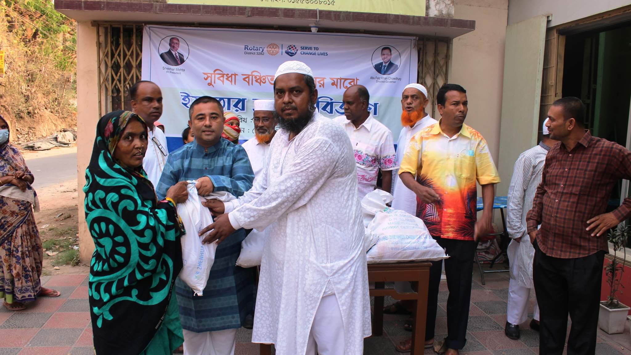 ১৮ এপ্রিল (সোমবার) বিকালে বান্দরবানের হোটেল গ্রীণ ল্যান্ড প্রাঙ্গনে রোটারি ক্লাব অব বান্দরবান এর আয়োজনে সুবিধা বঞ্চিত ৭০ পরিবারের হাতে চাউল, ছোলা, মুসর ডাল, তেল, চিনি, পেয়াঁজ, চিড়া, মুড়ি সহ বিভিন্ন সামগ্রী প্রদান করা হয়।