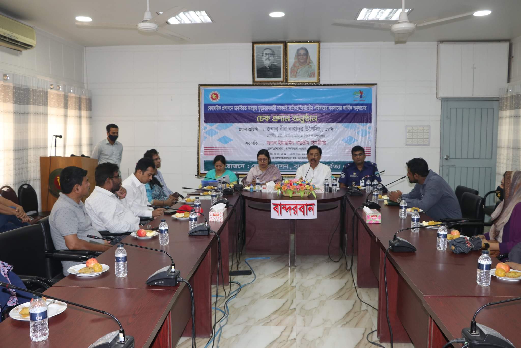 ২০মে (শুক্রবার) দুপুরে বান্দরবান জেলা প্রশাসকের কার্যালয়ের সভাকক্ষে বান্দরবান জেলা প্রশাসনের আয়োজনে পার্বত্য চট্টগ্রাম বিষয়ক মন্ত্রণালয়ের মন্ত্রী বীর বাহাদুর উশৈসিং এমপি প্রধান অতিথি হিসেবে উপস্থিত থেকে এই আর্থিক অনুদানের চেক বিতরণ করেন।
