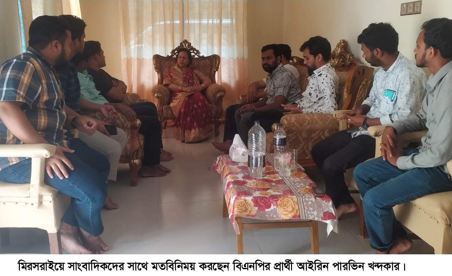 নিজস্ব প্রতিনিধি, মিরসরাই:: মিরসরাই বিএনপির প্রার্থী আইরিন পারভিন খন্দকার সাংবাদিকদের সাথে মতবিনিময় করেছে। শনিবার (২১ মে) সকালে তার নিজ বাসায় উপজেলার করেরহাট ইউনিয়নে এ মতবিনিময় সভা অনুষ্ঠিত হয়েছে। মতবিনিময়ে সভায় তিনি সাংবাদিকদের জানান, আগামী সংসদ নির্বাচনে চট্টগ্রাম জেলার মিরসরাই-১ আসন থেকে তিনি মনোনয়ন চাইবেন দল থেকে। যদি দল তাকে মনোনয়ন দেহ তিনি মিরসরাই বাসীর সেবা করতে ইচ্ছুক। আশা করেছে জনগণ তাকে বিপুল ভোট দিয়ে সংসদ সদস্য নির্বাচিত করবে। এই জনপদের আরো উন্নায়নের অঙ্গীকার করছি তিনি।