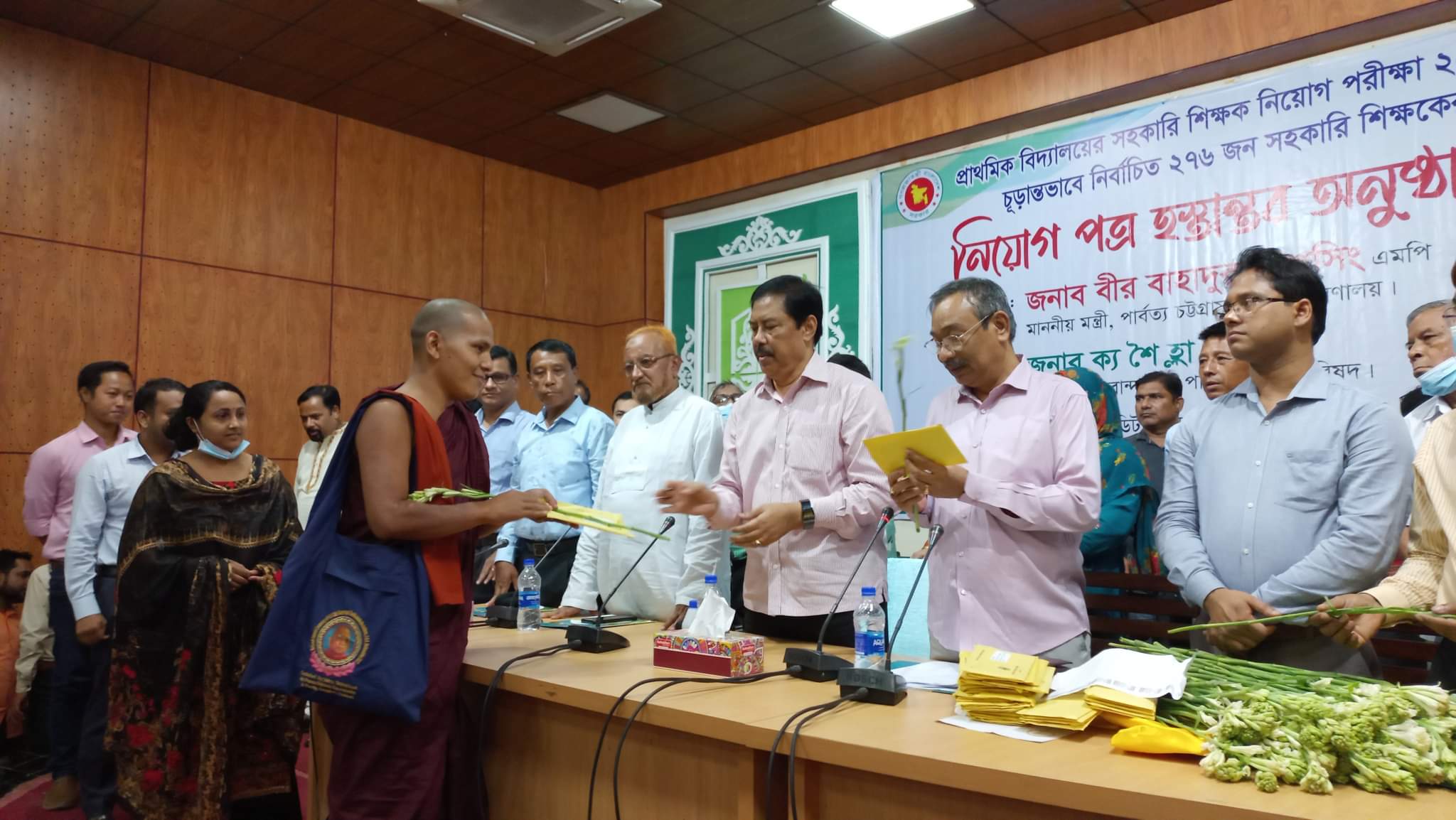 অনুষ্ঠানের শেষ পর্যায়ে শিক্ষকদের হাতে নিয়োগপত্র তুলে দেন পার্বত্যমন্ত্রী বীর বাহাদুর উশৈসিং এমপি।