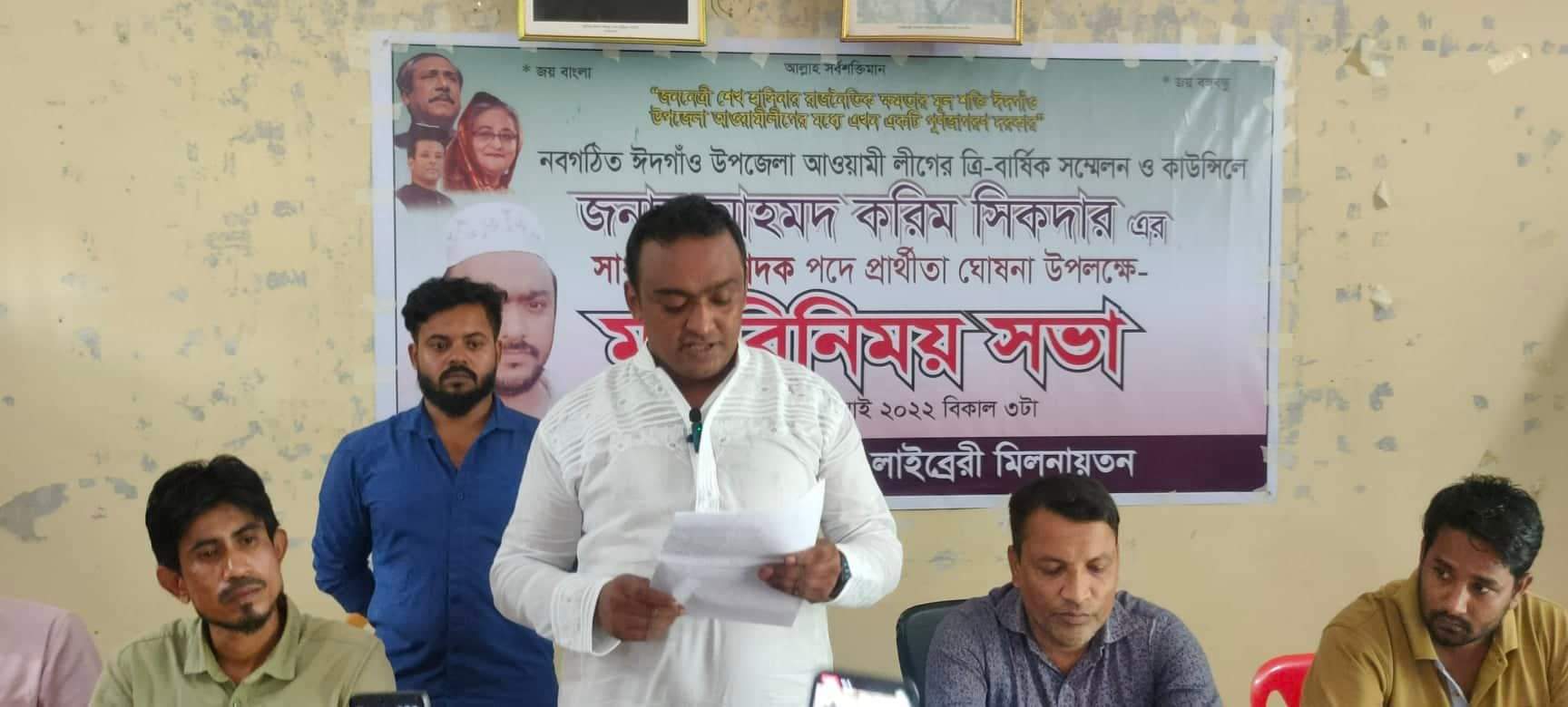 ঈদগাঁও উপজেলা আওয়ামী লীগের সাধারণ সম্পাদক পদে করিম সিকদারের প্রার্থীতা ঘোষণা