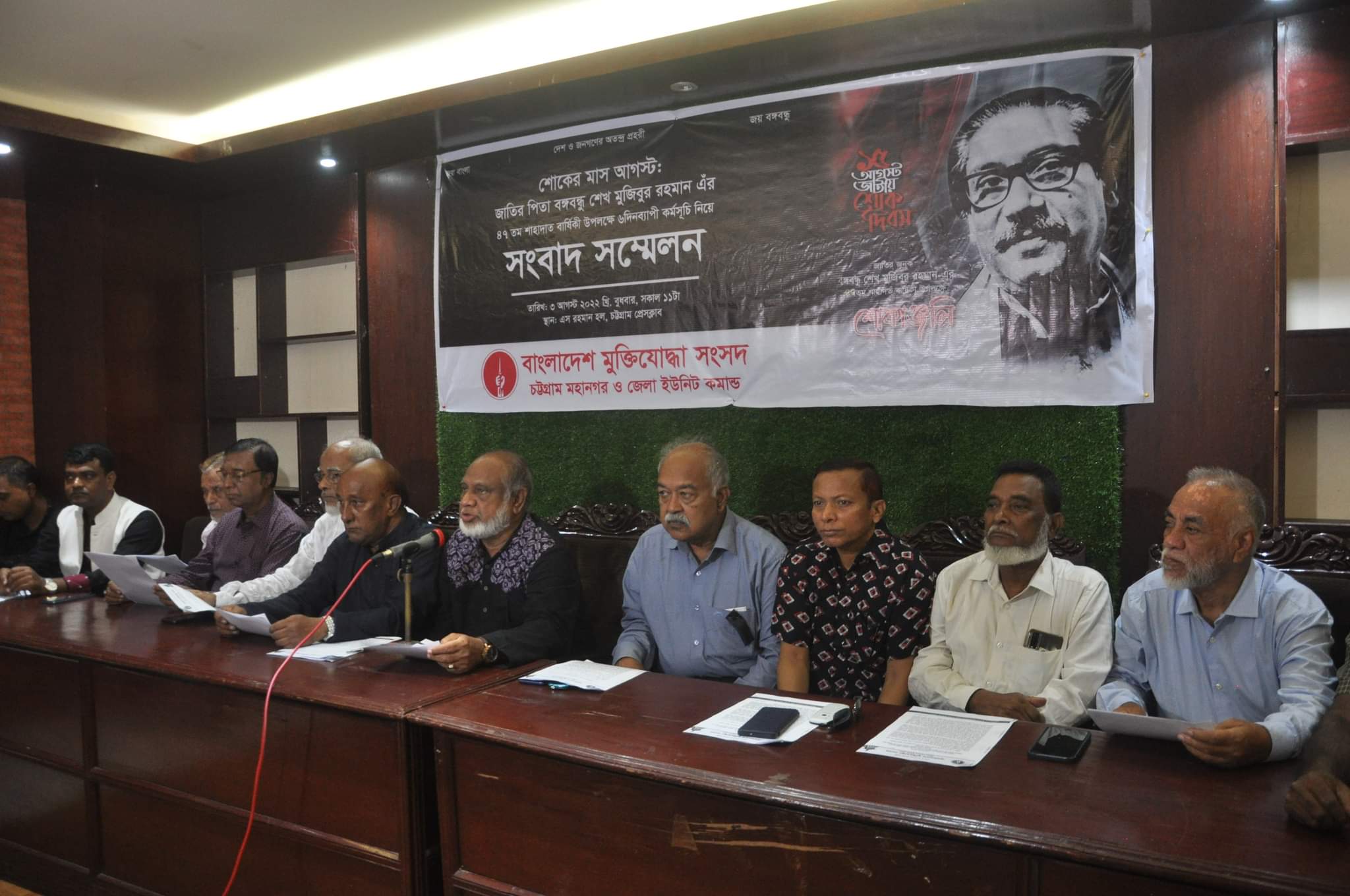 শোকের মাস আগষ্ট বংগবন্ধু শেখ মুজিবুর রহমানের ৪৭ তম শাহাদাত বার্ষিকী উপলক্ষ্যে বাংলাদেশমুক্তিযোদ্ধা সংসদ চট্রগ্রাম মহানগর ও জেলা ইউনিট কমান্ডের ৬ দিন ব্যাপী কর্মসূচি নিয়ে সংবাদ সম্মেলন করেন ৩ আগষ্ট সকাল ১১ টায় চট্রগ্রাম প্রেস ক্লাবের এস রহমান হলে বাংলাদেশমুক্তিযোদ্ধা সংসদ চট্রগ্রাম মহানগর ও জেলা ইউনিট কমান্ড। এসময় উপস্থিত ছিলেন বাংলাদেশমুক্তিযোদ্ধা সংসদ চট্রগ্রাম মহানগর ইউনিট কমান্ড মোজাফ্ফর আহাম্মদ কমান্ডার( ভারপ্রাপ্ত) এ,কেেএম সরোয়ার কামাল দুলু, চট্রগ্রাম প্রেস ক্লাবের সাধারণ সম্পাদক চৌধুরী ফরিদসহ প্রমূখ।