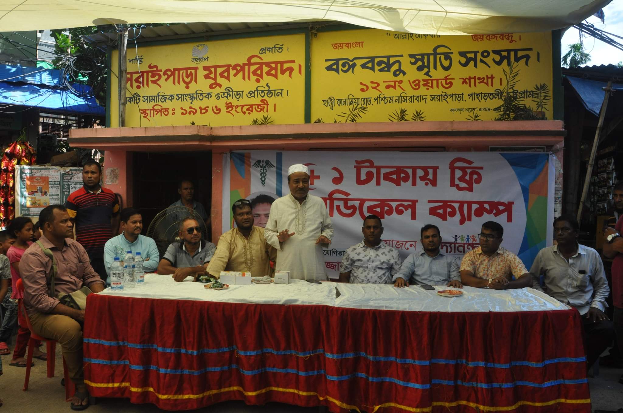 সরাইপাড়াতে গরীবদের মাঝে বিনামূল্যে মেডিকেল ক্যাম্পে বক্তব্য রাখছেন সাবেক কাউন্সিলর সাবের আহমদ সও:।[/caption]