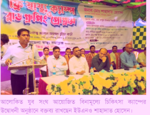 আলোকিত যুব সংঘ আয়োজিত বিনামূল্যে চিকিৎসা ক্যাম্পের উদ্বোধনী অনুষ্ঠানে বক্তব্য রাখছেন ইউএনও শাহাদাত হোসেন।
