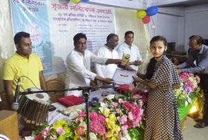 সৃজনী ললিতকলা একাডেমির ২৮ তম প্রতিষ্ঠা বার্ষিকী ও সাধীনতা দিবস উপলক্ষে দুই দিন ব্যাপি সাংস্কৃতিক প্রতিযোগিতা আলোচনা সভা, পুরস্কার বিতরন ও সম্মাননা অনুষ্ঠান সম্পন্ন । সীতাকুণ্ড উপজেলার ভাটিয়ারী ইউনিয়নে অবস্থিত ঐতিহ্যেবাহী সাংস্কৃতিক সংগঠন সৃজনী ললিতকলা একাডেমির ২৮ তম প্রতিষ্ঠা বার্ষিকীর অনুষ্ঠান গতকাল শনিবার বিকাল তিনটায় বিজয় স্মরণী কলেজের অডিটোরিয়ামে অনুষ্ঠিত হয় । এতে সংগঠনের সভাপতি নন্দন রায় এর সভাপতিত্বে ও প্রতিযোগিতা উদযাপন কমিটির আহবায়ক গিয়াস উদ্দিন টিটুর সঞ্চালনায় অতিথি হিসেবে উপস্থিত ছিলেন ভাটিয়ারী ইউনিয়ন আওয়ামী লীগের সাধারণ সম্পাদক খায়রুল আজম জসিম , সীতাকুণ্ড প্রেসক্লাবের সাধারণ সম্পাদক, সাংবাদিক লিটন কুমার চৌধুরী, এন বি স্টিলের ব্যাবস্হাপনা পরিচালক মো তসলিম উদ্দিন , লালবাগ শীপ ব্রেকিং এর পরিচালক মোহাম্মদ নাজিম উদদ্দোলা। বক্তারা বলেন বর্তমানে আমাদের চারিদিকে সন্রাস, মাদকাসক্ত, হিংসা বৃদ্ধি পাচ্ছে। তার একমাত্র কারণ আমরা সাংস্কৃতিক কর্ম কাণ্ড থেকে দুরে সরে যাচ্ছি । সৃজনী ললিতকলা একাডেমি দীর্ঘ ২৮ বছর ধরে আলোকিত মানুষ সৃষ্টির জন্য সাংস্কৃতিক কার্যক্রম চালিয়ে আসছে । আজকে যারা সাংস্কৃতিক প্রতিযোগিতায় অংশগ্রহণ করে পুরস্কার পেয়েছে তারা লেখা পড়ার পাশাপাশি প্রতিভা বিকাশ মূলক কর্মকাণ্ডে জড়িত থেকে নিজেকে আলোকিত মানুষ হিসেবে গড়ে তুলতে পারবে । ছোট ছোট শিশু কিশোরদের সুপ্ত প্রতিভা জাগিয়ে তোলার মাধ্যম সাংস্কৃতিক চর্চা । দেশের কৃষ্টি, সংস্কৃতি সমৃদ্ধ হবে বেশি বেশি সাংস্কৃতিক চর্চার মাধ্যমে। তাহলেই একটি স্থিতিশীল, সন্রাস মুক্ত, দূর্নীতি মুক্ত ও জংগিবাদ মুক্ত দেশ হিসেবে বিশ্বের মানচিত্রে মাথা উঁচু করে দাঁড়াতে পারবে । অতিথিরা একাডেমির শিশু কিশোরদের সঙ্গীত ও নৃত্য পরিবেশনা উপভোগ করেন ।চিত্রাঙ্কন, রবীন্দ্র, নজরুল, দেশের গান ও নৃত্যে প্রথম, দ্বিতীয়, তৃতীয় তিরিশ জনকে ক্রেষ্ট ও সার্টিফিকেট প্রদান করা হয় বিশ জনকে উৎসাহ পুরস্কার হিসেবে সার্টিফিকেট দেওয়া হয় এবং অতিথি মহোদয়ের মাঝে সম্মাননা স্মারক তুলে দেওয়া হয়। এর আগে গত ১১ মার্চ শনিবার সকাল দশটায় সাংস্কৃতিক প্রতিযোগিতার মাধ্যমে বাছাই করা হয় । অনুষ্ঠান আয়োজনে আরো উপস্থিত ছিলেন সংগঠনের সদস্য উজ্জ্বল পাল , চিত্রাঙ্কন শিক্ষক আরিফুল ইসলাম ,রোকসানা আক্তার, নৃত্য শিক্ষক সৌরভ চক্রবর্তী, টিটু নাথ, নন্দন রুদ্র , তন্ময় পাল শ্রাবণ পাল প্রমুখ ।