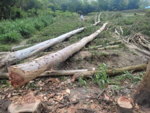 সীতাকুণ্ড পৌরসভাধীন ৫ নং ওয়ার্ড মধ্যম মহাদেবপুর প্রেমতলার পূর্ব পার্শ্বে দূর্বৃত্তদের কেটে ফেলা গাছ পড়ে আছে জমিতে।[/caption]