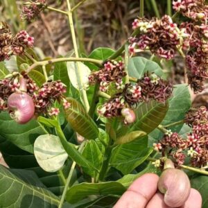 সীতাকুণ্ড চন্দ্রনাথ পাহাড়ের পাদদেশ পৌরসদর উত্তর এয়াকুব নগরের কৃষক নিজাম উদ্দীনের পাহাড়ি জমিতে লাগানো কাজু বাদাম গাছে ফুল চলে আসছে। ছবি: মো: মনির।[/caption]