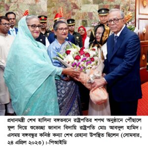 বিদায়ী রাষ্ট্রপতিকে ফুল দিয়ে শুভেচ্ছা