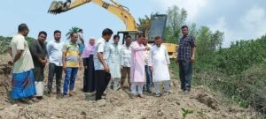 খনন কাজ পরিদর্শন করছেন মুরাদপুর ইউনিয়ন পরিষদের চেয়ারম্যান মো: রেজাউল করিম বাহার।[/caption]