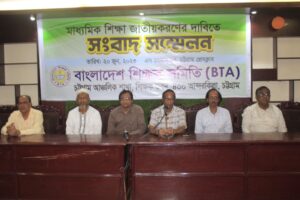 মঙ্গলবার (২০ জুন) চট্টগ্রাম প্রেস ক্লাবের এস রহমান হলে বাংলাদেশ শিক্ষক সমিতি কর্তৃক মাধ্যমিক শিক্ষা জাতীয়করণের দাবিতে আয়োজিত সংবাদ সম্মেলনে সংগঠনের নেতারা এসব কথা বলেন।