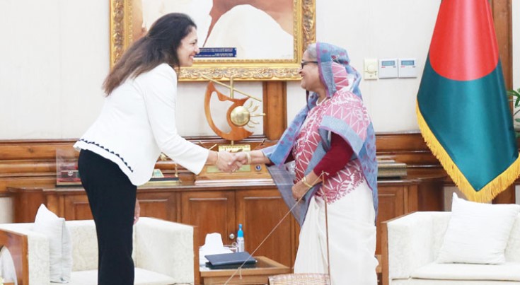প্রধানমন্ত্রী শেখ হাসিনার সঙ্গে সৌজন্য সাক্ষাৎ করেছেন যুক্তরাষ্ট্রের গণতন্ত্র, মানবাধিকার ও বেসামরিক জনগণের নিরাপত্তাবিষয়ক আন্ডার সেক্রেটারি আজরা জেয়া এবং দেশটির দক্ষিণ ও মধ্য-এশিয়াবিষয়ক সহকারী পররাষ্ট্রমন্ত্রী ডোনাল্ড লু।