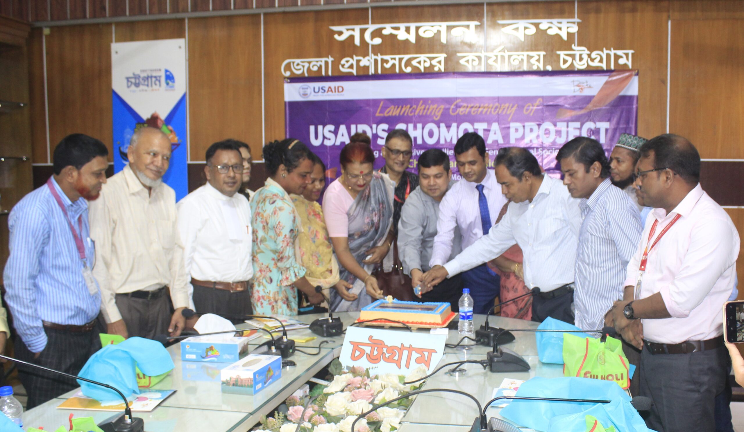 [caption id="attachment_86513" align="aligncenter" width="2560"] চট্টগ্রাম জেলা প্রশাসকের সম্মেলন কক্ষে কেক কেটে এই প্রকল্পের উদ্বোধন করেন অতিথিরা। ছবি - আব্দুল হান্নান[/caption]