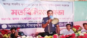 রবিবার বিকাল ৪টায় সীতাকুণ্ড মডেল থানা কর্তৃক আয়োজিত আইন-শৃঙ্খলার সভায় সভাপতির বক্তব্যে সীতাকুণ্ড মডেল থানার ওসি তোফায়েল আহমেদ একথা বলেন। তিনি আরো বলেন, উপজেলার প্রত্যেকটি মন্দিরের কমিটি ও স্বেচ্চাসেবকরা সবসময় সচেতন থাকতে হবে। মন্দির এলাকায় কোন বিশৃঙ্খলা কিংবা সন্দেহজনক কিছু দেখলেই পুলিশকে খবর দিন। বাকি কাজ আমরাই করব। ওসি (তদন্ত) মোঃ আবু সাঈদের সঞ্চালনায় এতে বিশেষ অতিথি হিসেবে আরো বক্তব্য রাখেন সীতাকুণ্ড প্রেস ক্লাবের সভাপতি সৌমিত্র চক্রবর্তী, উপজেলা পূজা উদযাপন পরিষদের সভাপতি বিমল চন্দ্র নাথ, সহ-সভাপতি স্বপন কুমার বণিক ও সাধারণ সম্পাদক আশীষ শর্মা, পৌরসভা পূজা কমিটির সভাপতি সুজিত পাল, সাধারণ সম্পাদক রকি দাশসহ বিভিন্ন মন্দির কমিটির নেতৃবৃন্দ। অনুষ্ঠানে পূজার নেতৃবৃন্দ পূজাকে সুষ্ঠাভাবে সম্পন্ন করতে প্রশাসনের সহযোগিতা কামনা করেন।