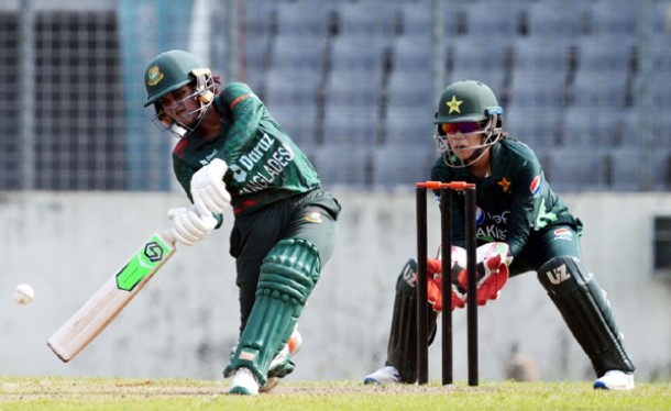 রান তাড়ায় নামা পাকিস্তান শুরুটা করে বেশ ভালো। তাদের প্রথম উইকেট পাওয়ার জন্য বাংলাদেশকে অপেক্ষা করতে হয় ১৭তম ওভার অবধি। ৪৩ বলে ২২ রান করা সিদরা আমিনকে আউট করেন ফাহিমা খাতুন। পরের ওভারেই তিন বল খেলে কোনো রান করার আগে বিসমাহ মারুফকে জ্যোতির ক্যাচ বানান তিনি।