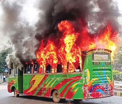গত ২৯ অক্টোবর ডেমরা পশ্চিম দেইলা এলাকায় অছিম পরিবহণের একটি বাসে আগুন দেওয়া হয়। এ সময় বাসের হেলপার ভেতরে ঘুমাচ্ছিল। ভোরের দিকে আগুন দেওয়ায় সেই হেলপার নাঈম (২২) দগ্ধ হয়ে মারা যান।