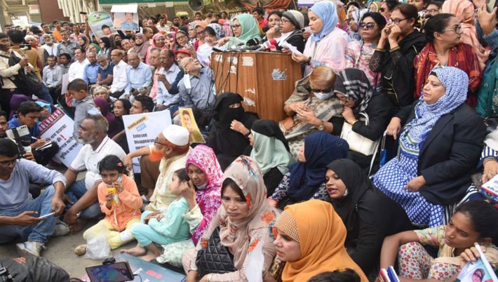 [caption id="attachment_87855" align="aligncenter" width="710"] ‘রাজবন্দিদের স্বজন’ ব্যানারে মঙ্গলবার দুপুরে রাজধানীর জাতীয় প্রেসক্লাবের সামনে মানববন্ধন। [/caption]