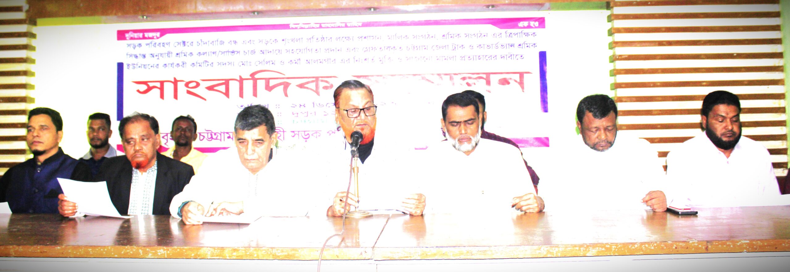 সড়ক পরিবহন সেক্টরে চাঁদাবাজি বন্ধ, সড়কে শৃঙ্খলা প্রতিষ্ঠার জন্য জাতীয়ভাবে প্রতিনিধিত্বকারী সড়ক পরিবহন মালিক সংগঠন, শ্রমিক সংগঠন এবং প্রশাসনের উচ্চ পর্যায়ের বৈঠকে মালিক শ্রমিক সংগঠনের নির্দেশিকা অনুযায়ী নিদিষ্ট ষ্ট্যান্ডে, লোডিং আনলোডিং পয়েন্টে শ্রমিক কল্যাণ বা সার্ভিস চার্জ আদায়ের সিদ্ধান্ত গৃহীত হয়। ত্রিপাক্ষিক সিদ্ধান্ত অনুযায়ী সারাদেশে মালিক শ্রমিকেরপক্ষ থেকে শ্রমিক কল্যাণ/সার্ভিস চার্জ আদায় করার ক্ষেত্রে কোন বাধা না থাকলেও বৃহত্তর চট্টগ্রামে কথিত বাংলাদেশ ট্রাক চালক শ্রমিক ফেডারেশনের প্রত্যক্ষ ও পরোক্ষ প্ররোচনায় প্রশাসন কর্তৃক বিভিন্নভাবে বাধা প্রদান করা হচ্ছে। অথচ কথিত বাংলাদেশ ট্রাক চালক শ্রমিক ফেডারেশন নামের উক্ত সংগঠনটি বিভিন্ন জায়গায় সার্ভিস চার্জ আদায় করছে। কথিত বাংলাদেশ ট্রাক চালক শ্রমিক ফেডারেশন সংগঠনটি একটি ফেডারেশন। ফেডারেশন কোন শ্রমিকের কাছ থেকে শ্রমিক কল্যাণ তহবিলের চাঁদা আদায়ের আইনগত অধিকার রাখে না। ফেডারেশন বেসিক ইউনিয়নগুলোকে নিয়ন্ত্রণ এবং তদারক করে মাত্র। কিন্তু কথিত বাংলাদেশ ট্রাক চালক শ্রমিক ফেডারেশন সংগঠনটির চট্টগ্রামে কোন বেসিক ইউনিয়ন না থাকা সত্বেও জায়গায় জায়গায় মোটা অংকের অবৈধচাঁদা আদায় করে থাকে।