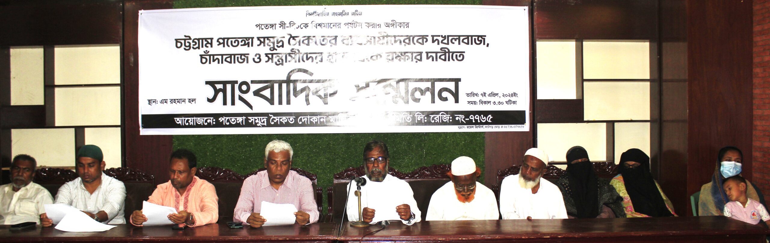 দখল চাঁদাবাজি সন্ত্রাসী কর্মকাণ্ডের বিরুদ্ধে আইনানুগ ব্যবস্থা নেওয়ার দাবি জানিয়েছে পতেঙ্গা সমুদ্র সৈকত দোকান মালিক সমবায় সমিতি লিমিটেড।