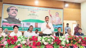 সীতাকুণ্ডে ভূমিহীন-গৃহহীন পরিবারের মাঝে জমি ও গৃহ হস্তাস্তর অনুষ্ঠানে প্রধান অতিথির বক্তব্য রাখছেন চট্টগ্রাম জেলা প্রশাসক আবুল বাসার মোহাম্মদ ফখরুজ্জামান।[/caption]