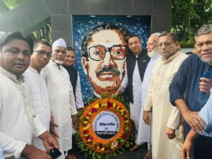 [caption id="attachment_90519" align="alignnone" width="300"] বাংলাদেশ আওয়ামী লীগের ৭৫তম প্লাটিনাম জয়ন্তী উদযাপন উপলক্ষে জাতির পিতা বঙ্গবন্ধু শেখ মুজিবুর রহমানের প্রতিকৃতিতে শ্রদ্ধা নিবেদন।[/caption]
