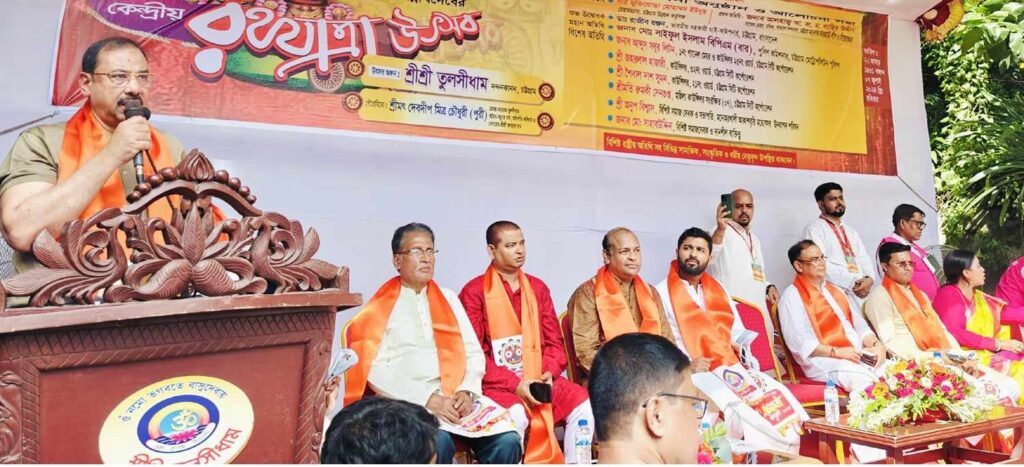 সংবর্ধিত অতিথি চট্টগ্রাম উন্নয়ন কর্তৃপক্ষের (সিডিএ) চেয়ারম্যান বীর মুক্তিযোদ্ধা মোহাম্মদ ইউনুছ বলেন, চট্টগ্রাম শহরে ২শ বছরের প্রাচীন তুলসীধামের কেন্দ্রীয় রথযাত্রা উৎসবে যোগ দিতে পেরে আমি আনন্দিত। এই রথযাত্রায় আছে জয়ের বার্তা। রথযাত্রা তাই প্রাণের আনন্দযাত্রা। রথযাত্রা উৎসবে বিশেষ অতিথি সিএমপি কমিশনার মো. সাইফুল ইসলাম বলেন, রথযাত্রা উৎসব সব সম্প্রদায়ের মধ্যে ভ্রাতৃত্ব-সৌহার্দ্য-বন্ধুত্বের নিগূঢ় সম্পর্ককে অনন্য উচ্চতায় এগিয়ে নেয়। চট্টগ্রামে সব সম্প্রদায়ের মানুষ মিলেমিশে ধর্মীয় অনুষ্ঠানে শামিল হয় জেনে আমি খুশি হয়েছি। উৎসবে সংবর্ধিত অতিথি ছিলেন সিডিএ চেয়ারম্যান বীর মুক্তিযোদ্ধা মোহাম্মদ ইউনুছ। বিশেষ অতিথি ছিলেন সিএমপি কমিশনার মো. সাইফুল ইসলাম, চসিক প্যানেল মেয়র আব্দুস সবুর লিটন, কাউন্সিলর জহরলাল হাজারী, মহিলা কাউন্সিলর রুমকি সেনগুপ্ত, সাবেক কাউন্সিলর বিজয় কুমার চৌধুরী কিষাণ, ব্যবসায়ী মো. সাহাবউদ্দিন, লিটন ধর। অ্যাড. সুজন কান্তি দে এর সঞ্চালনায় স্বাগত বক্তব্য দেন কেন্দ্রীয় রথযাত্রা উদ্যাপন কমিটির সভাপতি ডা. মাধব চন্দ্র চৌধুরী ও সাধারণ সম্পাদক বিধান ধর। বক্তব্য দেন তুলসীধাম পরিচালনা পরিষদের সম্পাদক স্থপতি প্রণত মিত্র চৌধুরী, ডা. মনোজ চৌধুরী, সুজিত হাজারী, জ্যোতির্ময় প্রকাশক এস প্রকাশ পাল, সুধাংশু রঞ্জন দাশ, জহরলাল দত্ত, বিধান ধর, প্রদীপ দাশ, চন্দ্রনাথ পাল, শ্যামদাশ ধর, বাঁশীরাম দে, রতন দেবনাথ, আশুতোষ দেব, প্রবীর দাশ, তপন দাশ প্রমুখ। অনুষ্ঠানে অতিথিদের কেন্দ্রীয় রথযাত্রা উদ্যাপন কমিটির পক্ষ থেকে সম্মাননা স্মারক প্রদান করা হয়। পরে বেলুন উড়িয়ে ও রথের রশি টেনে রথপরিক্রমা উদ্বোধন করেন অতিথিবৃন্দ। ঢোলক বাদ্য, মঙ্গল শঙ্খ ও উলুধ্বনি দিয়ে জগন্নাথ-সুভদ্রা-বলভদ্রকে রথারোহণ করানো হয়।
