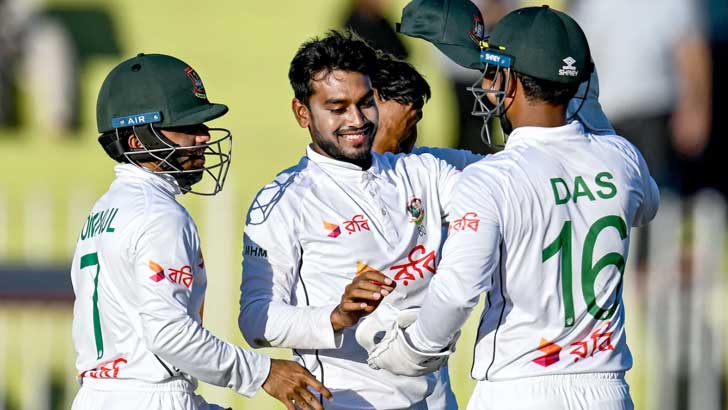 রাওয়ালপিন্ডিতে প্রথম ইনিংসে সায়েম আইয়ুব (৫৮) শান মাসুদ (৫৭) ও আগা সালমানের (৫৪) ফিফটিতে ভর করে ২৭৪ রান করে পাকিস্তান। বাংলাদেশ দলের হয়ে ৫ ও ৩টি করে উইকেট নেন মেহেদি হাসান মিরাজ ও তাসকিন আহমেদ।