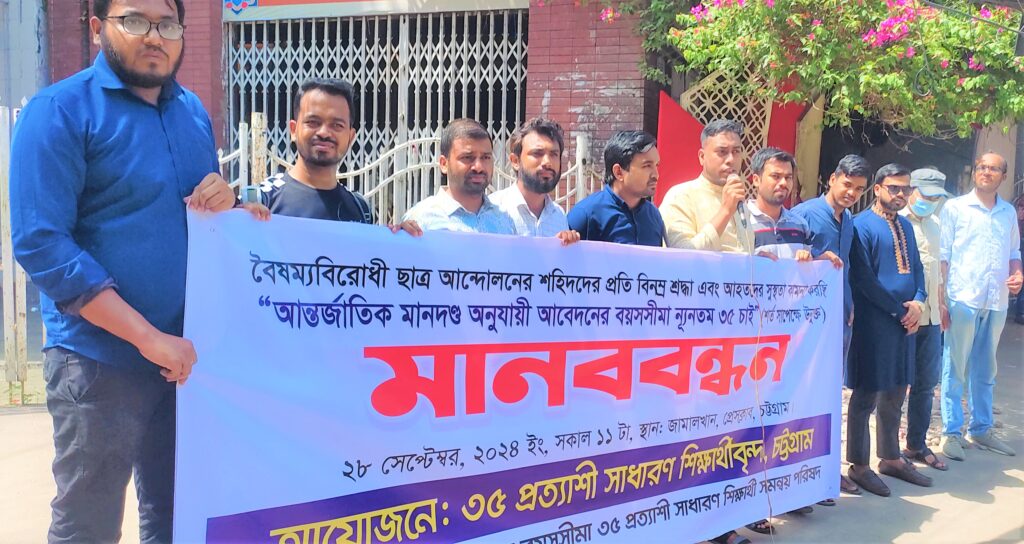 চাকরিতে বয়সসীমা বাড়াতে চট্টগ্রাম প্রেস ক্লাবে মানববন্ধন ও বিক্ষোভ মিছিল অনুষ্ঠিত